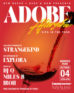 October 4th 12pm-4pm An afternoon tasting experience of local brews, fine wines and craft spirits. Adobe Afterglow Day Party with DJs Q, Miles B & Iroh! Enjoy Bites from local Food Trucks and Shop from over 50 local makers at the market and Kids Experience by Explora.